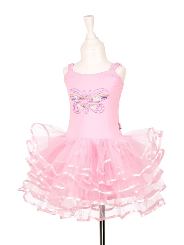 Mooi roze prinsessenjurkje met uitstaande tutu en mooie vlinderafbeelding op de voorkant. Super leuk om in te verkleden, op te treden en dansen!