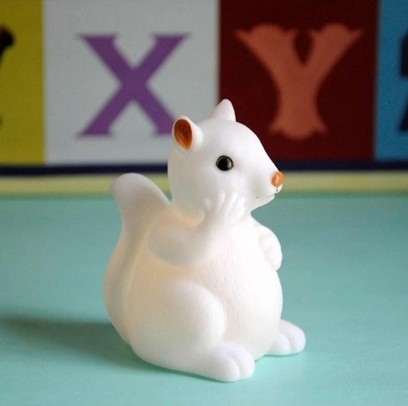 Lief baby eekhoorn nachtlampje – een kunststof nachtlampje met LED verlichting. Het lampje heeft een aan/uit-schakelaar op de onderzijde en is voorzien van 3 knoopcelbatterijen (LR44). Het nachtlampje wordt geleverd in een transparant geschenkdoosje.