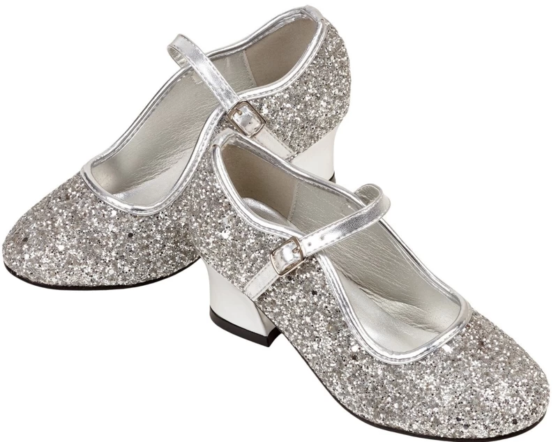 Mooie zilver glitter prinsessen schoentjes met echte klakhakjes van het merk Souza for Kids! Echte dansschoentjes voor echte prinsessen. Past onder iedere prinsessenjurk en zeker onder een frozen elsa ijsprinses jurk!