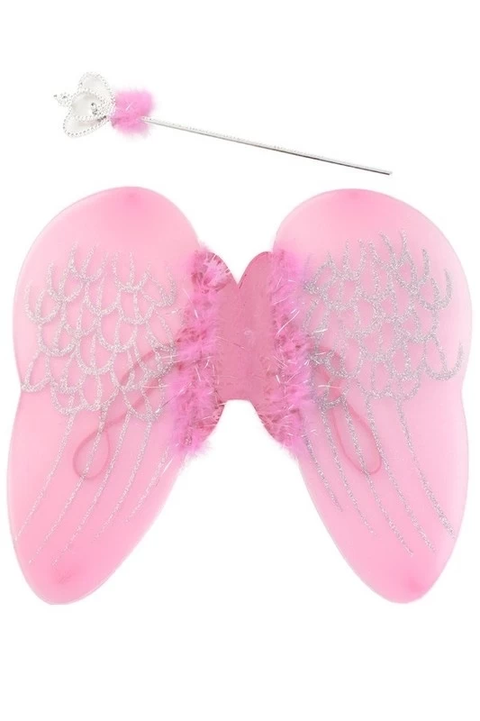 Mooi Setje met lichtroze vleugels en veren + stafje. Iedere prinses of fee wil deze mooie vleugels!