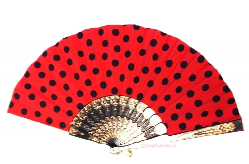 Super mooie rode waaier met zwarte stippen.